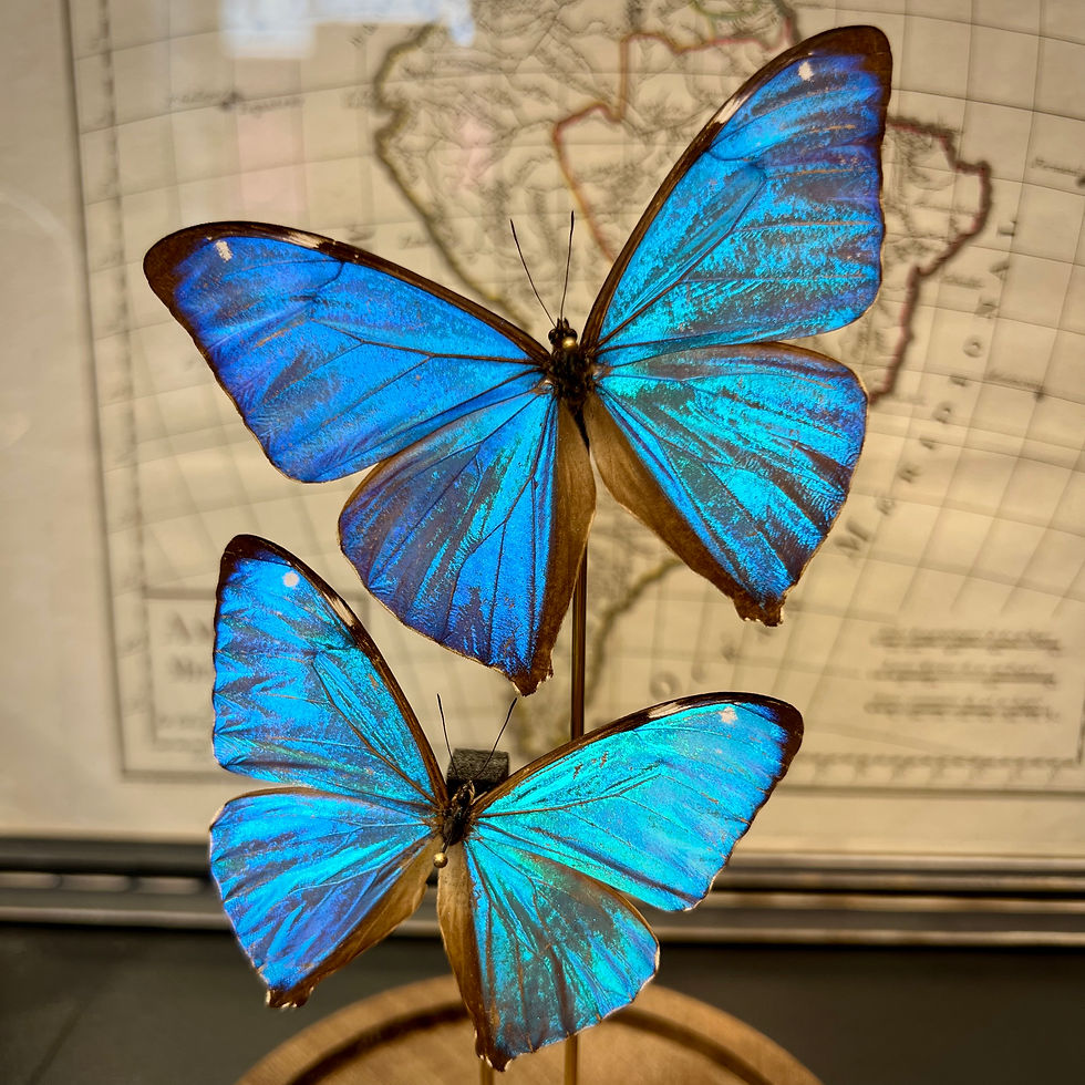 Morpho catenaria sous cloche base noire